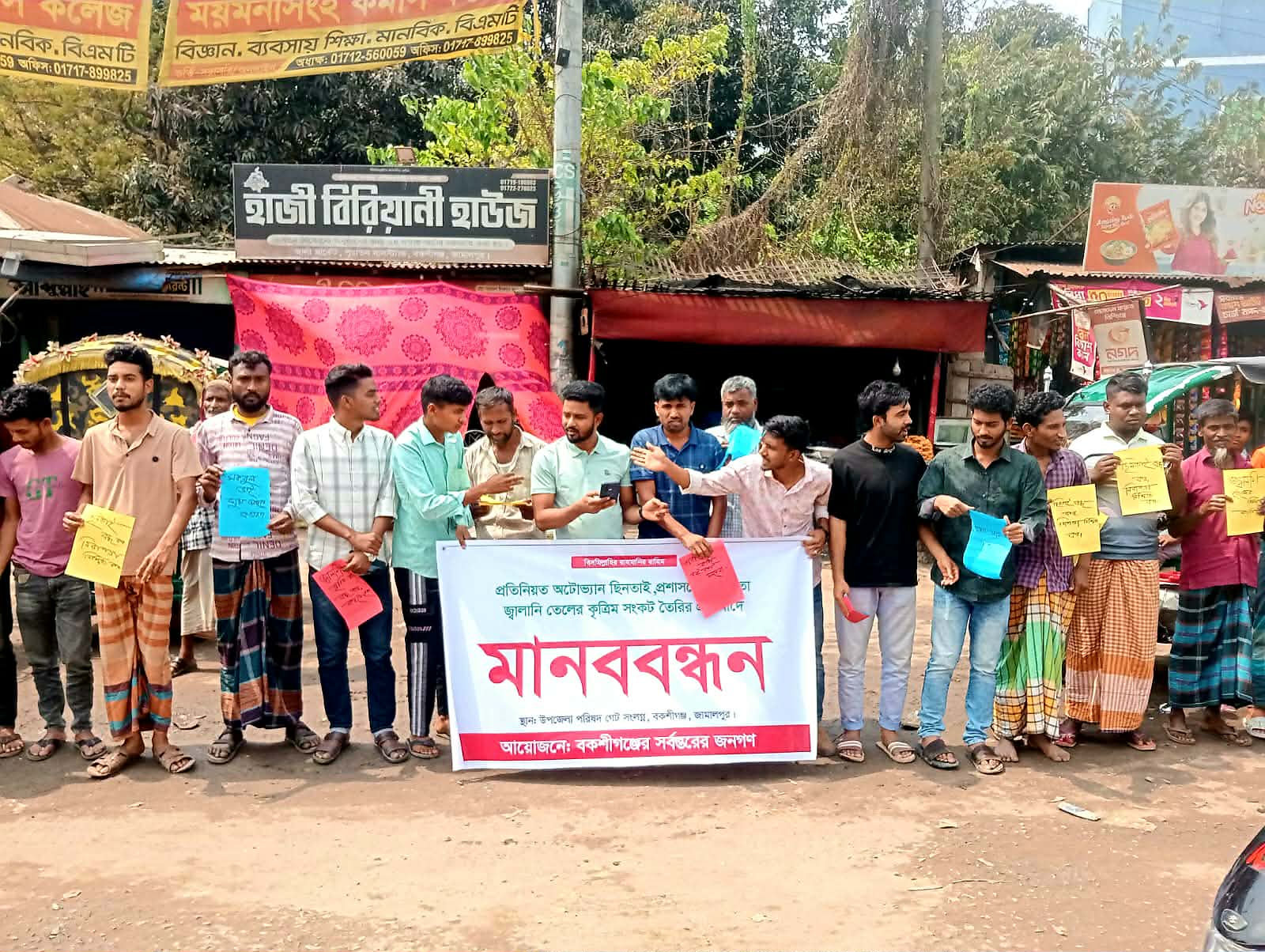 অটোভ্যান চুরি, ছিনতাই বেড়ে যাওয়ার ঘটনায় মানববন্ধন অনুষ্ঠিত।